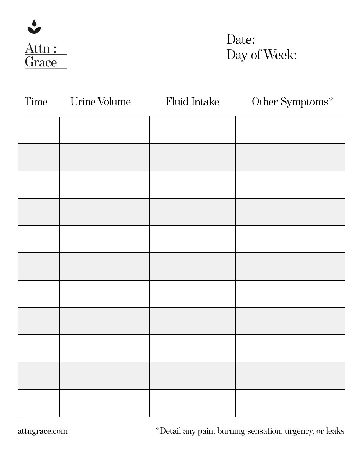 Voiding Diary Printable